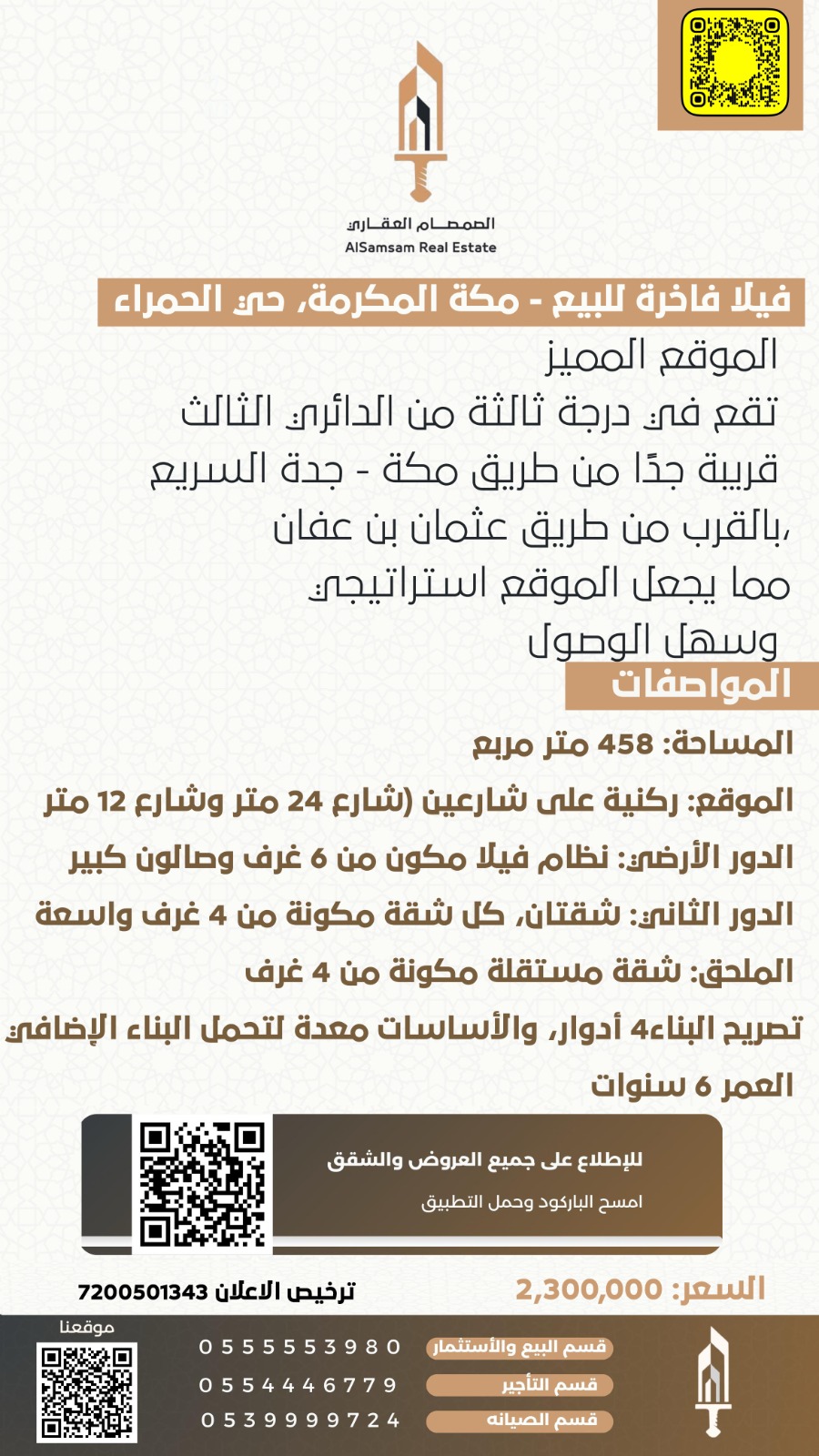 🔸 السعر: 2,300,000 ريال سعودي